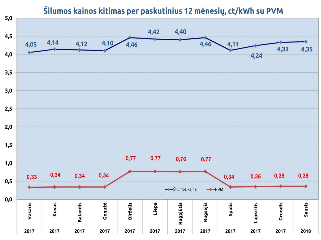 Centralizuotai tiekiamai šilumai ir karštam vandeniui taikomas PVM:gyventojams lengvatinis 9 procentų; kitiems vartotojams - 21 procento tarifas. Gyventojams 21 procento PVM taikomas karšto vandens skaitiklių aptarnavimo mokesčiui.