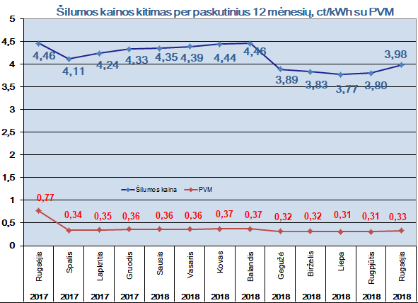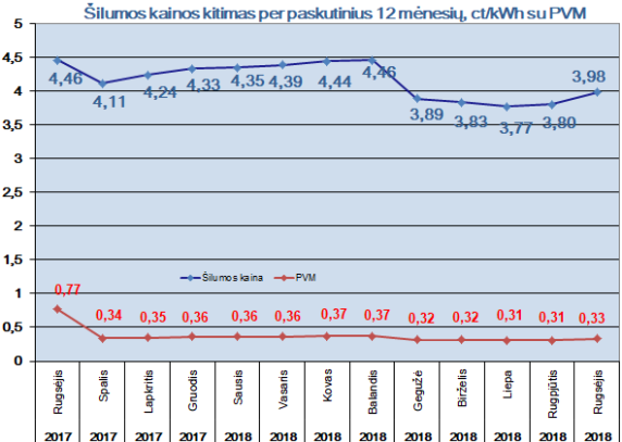 Centralizuotai tiekiamai šilumai ir karštam vandeniui taikomas PVM:gyventojams lengvatinis 9 procentų; kitiems vartotojams - 21 procento tarifas. Gyventojams 21 procento PVM taikomas karšto vandens skaitiklių aptarnavimo mokesčiui.
