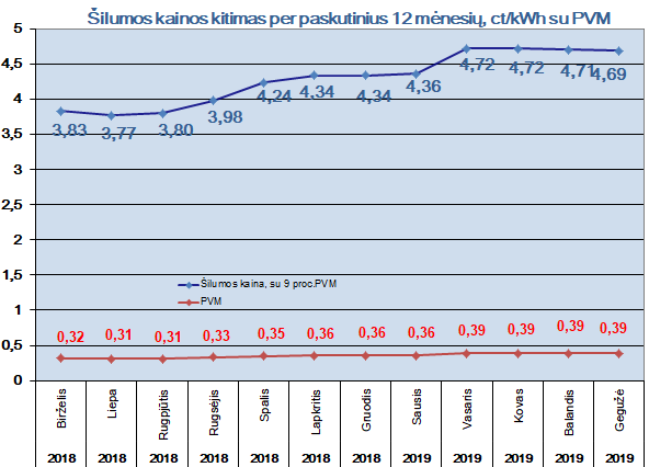 Centralizuotai tiekiamai šilumai ir karštam vandeniui taikomas PVM:gyventojams lengvatinis 9 procentų; kitiems vartotojams - 21 procento tarifas. Gyventojams 21 procento PVM taikomas karšto vandens skaitiklių aptarnavimo mokesčiui.