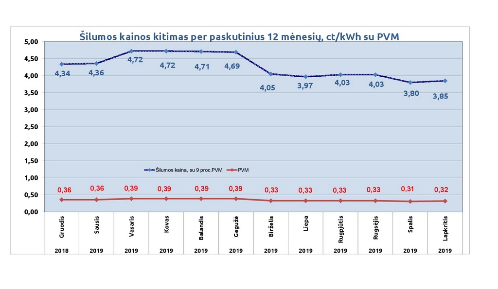Galutinė vienanarė šilumos kaina bendrijoms (su 9 proc. PVM)