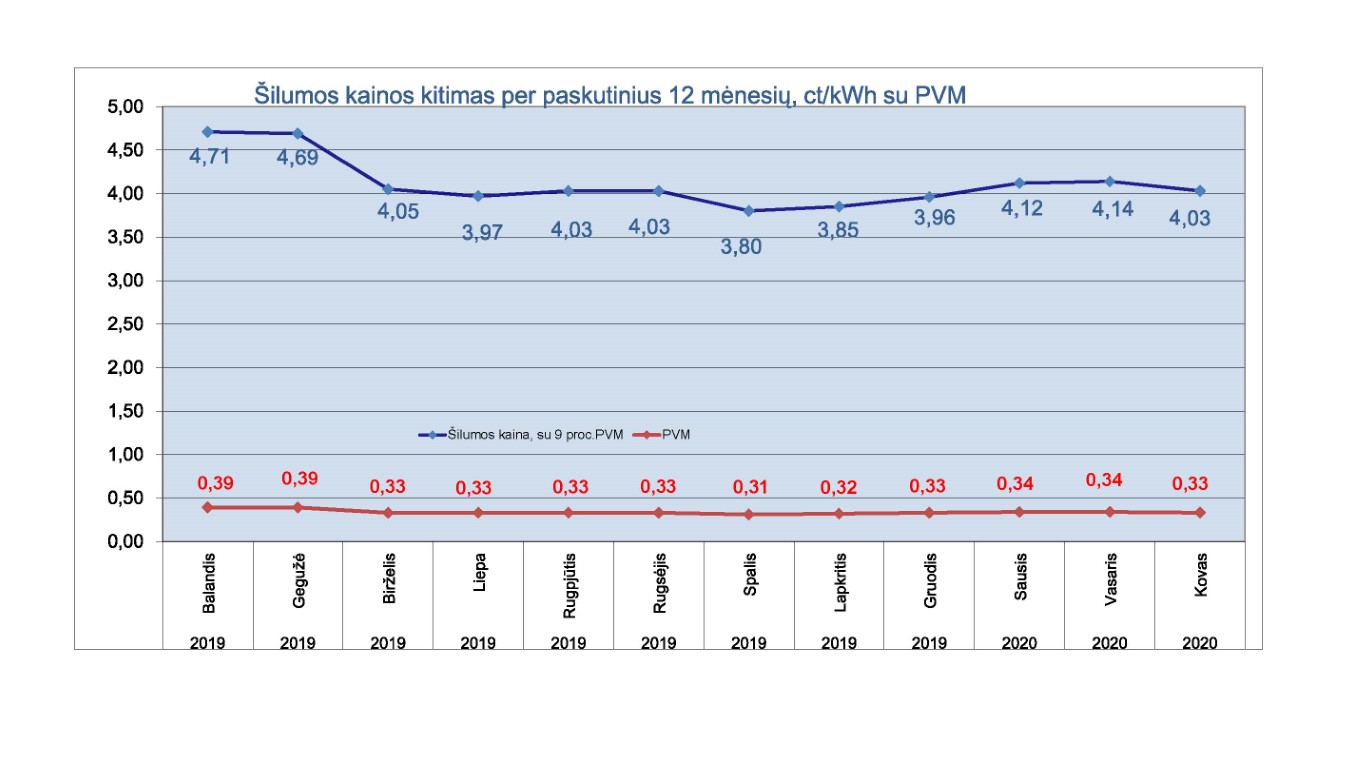Galutinė vienanarė šilumos kaina bendrijoms (su 9 proc. PVM)