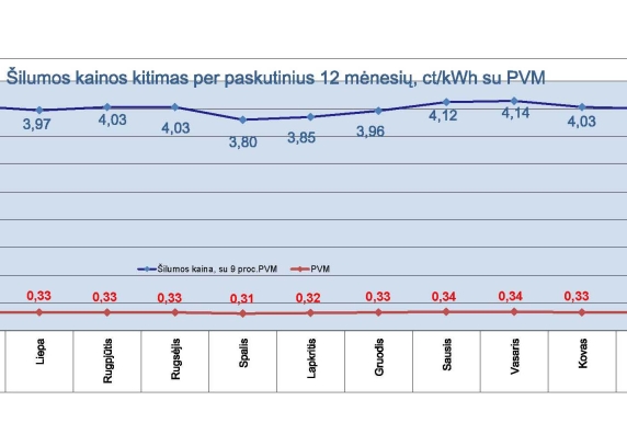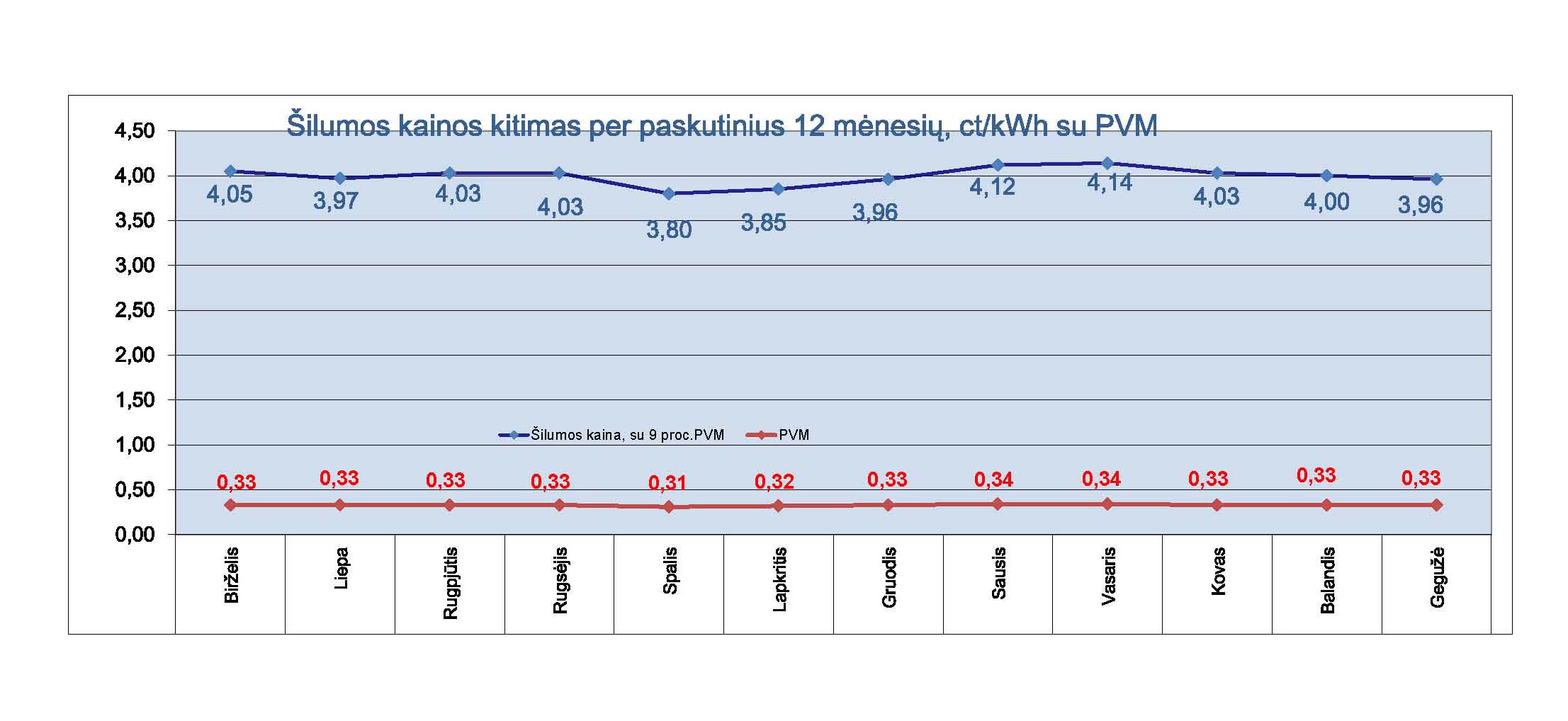 Galutinė vienanarė šilumos kaina bendrijoms (su 9 proc. PVM)