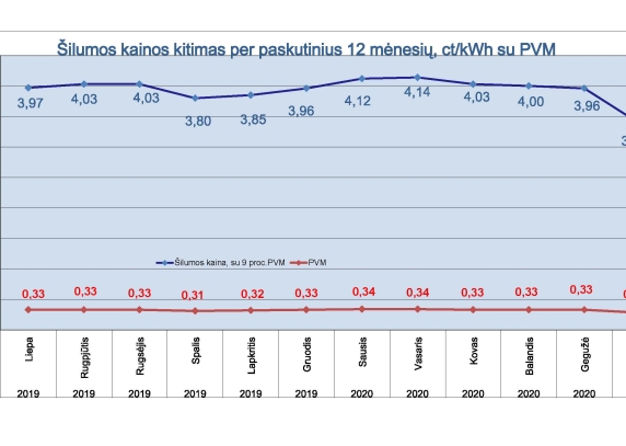 Galutinė vienanarė šilumos kaina bendrijoms (su 9 proc. PVM)