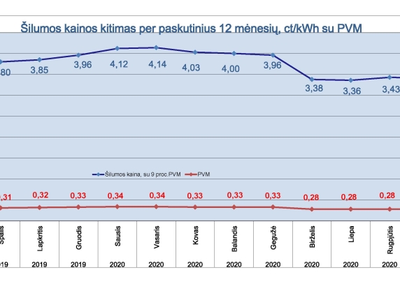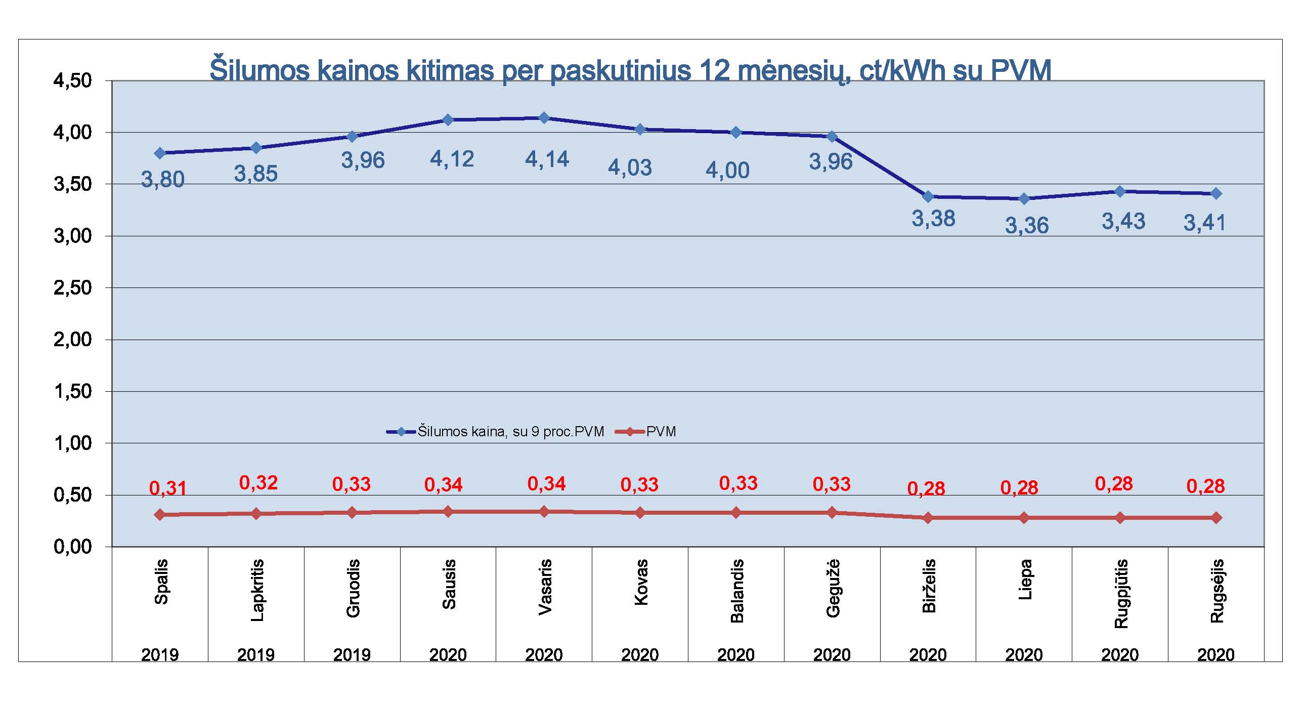 Galutinė vienanarė šilumos kaina bendrijoms (su 9 proc. PVM)