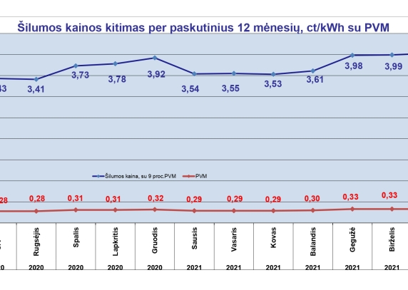 Galutinė vienanarė šilumos kaina bendrijoms (su 9 proc. PVM)
