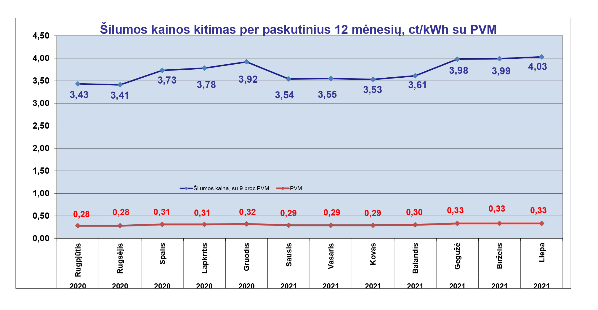 Centralizuotai tiekiamai šilumai ir karštam vandeniui taikomas PVM:gyventojams lengvatinis 9 procentų; kitiems vartotojams - 21 procento tarifas. Gyventojams 21 procento PVM taikomas karšto vandens skaitiklių aptarnavimo mokesčiui.