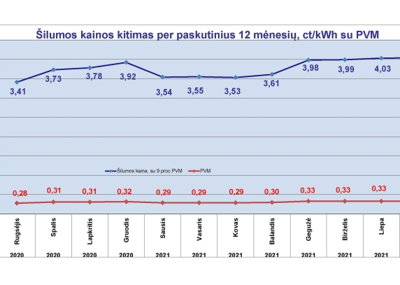 Centralizuotai tiekiamai šilumai ir karštam vandeniui taikomas PVM:gyventojams lengvatinis 9 procentų; kitiems vartotojams - 21 procento tarifas. Gyventojams 21 procento PVM taikomas karšto vandens skaitiklių aptarnavimo mokesčiui.