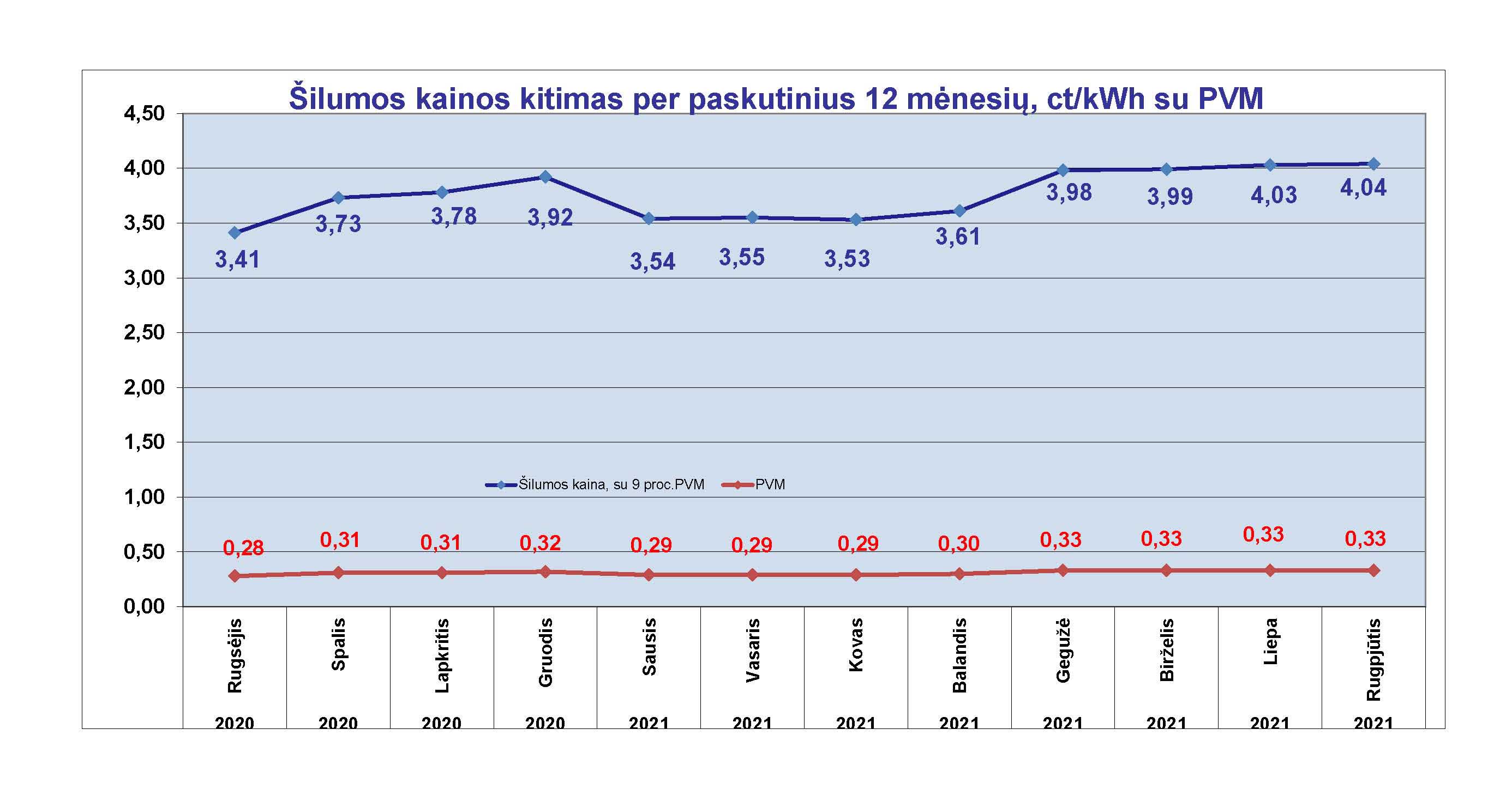 Galutinė vienanarė šilumos kaina bendrijoms (su 9 proc. PVM)