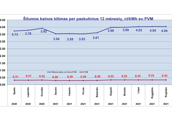 Galutinė vienanarė šilumos kaina (su 9 proc. PVM)