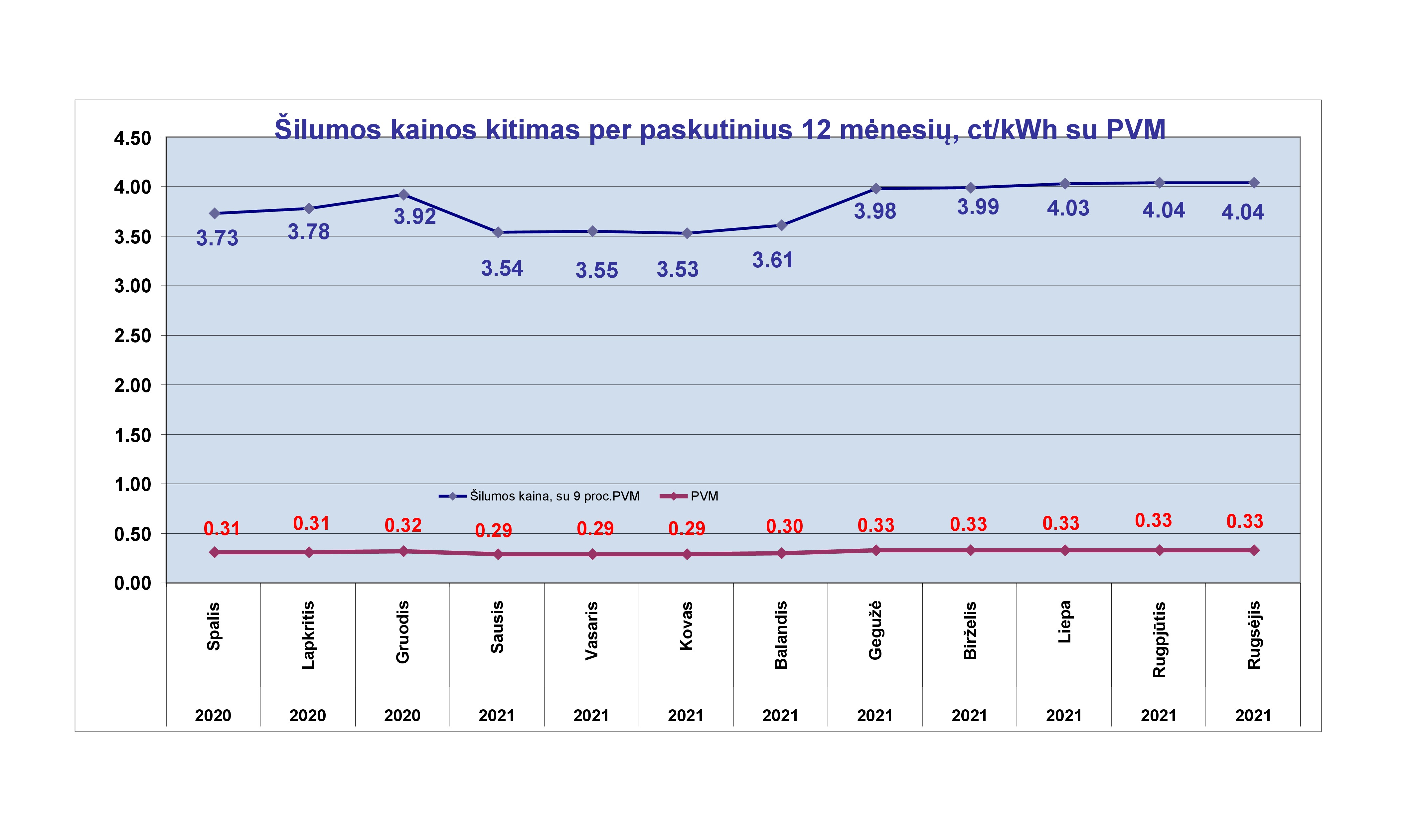 Galutinė vienanarė šilumos kaina bendrijoms (su 9 proc. PVM)
