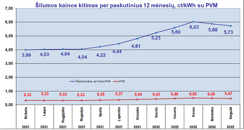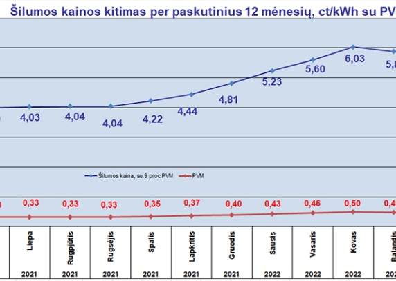 Gyventojams šilumos vienanarė kaina už suvartotą šilumos kiekį – 5,73 ct/kWh su 9 proc. PVM (5,26 ct/kWh be PVM)