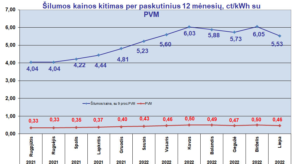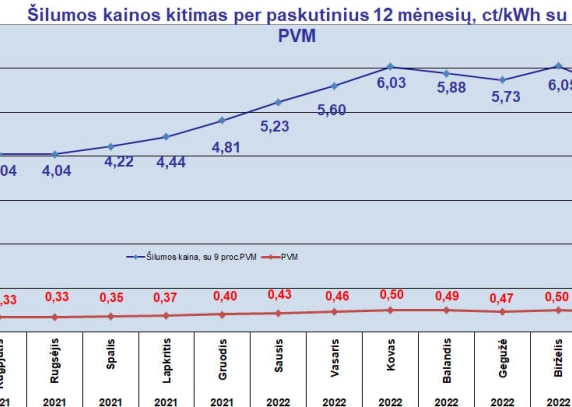 Gyventojams šilumos vienanarė kaina už suvartotą šilumos kiekį – 5,53 ct/kWh su 9 proc. PVM (5,07 ct/kWh be PVM)