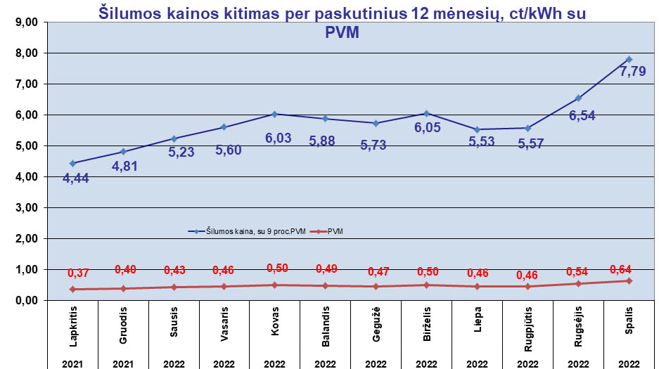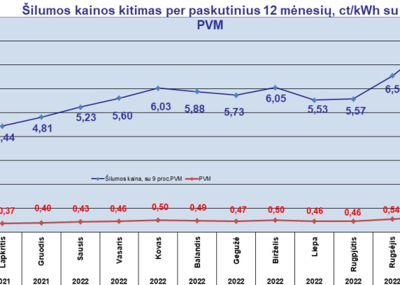 Gyventojams šilumos vienanarė kaina už suvartotą šilumos kiekį – 7,79 ct/kWh su 9 proc. PVM (7,15 ct/kWh be PVM)