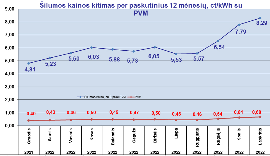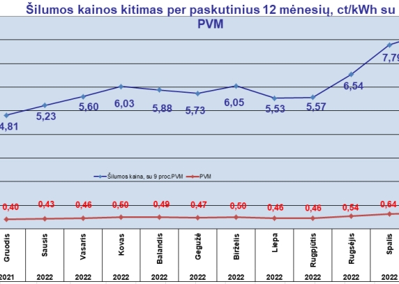9 proc. PVM kompensavimo šildymui ir karštam vandeniui taikymas gyventojams numatytas nuo 2022 m. spalio 1 d. iki 2023 m. balandžio 30 d.