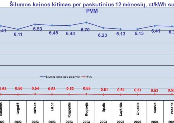 Gyventojams šilumos vienanarė kaina už suvartotą šilumos kiekį – 6,45 ct/kWh su 9 % PVM*