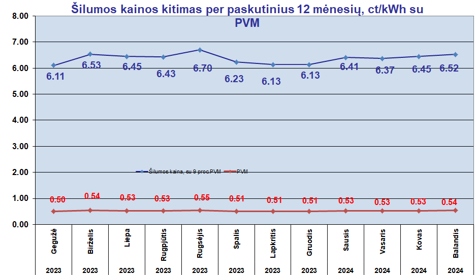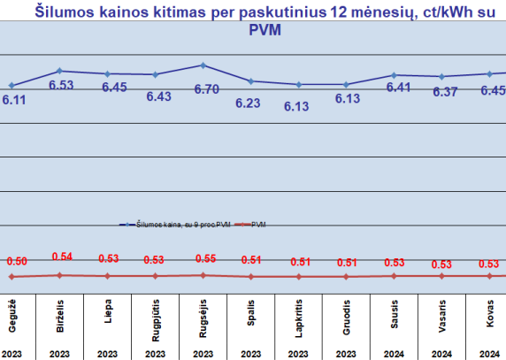 Kitiems vartotojams šilumos vienanarė kaina už suvartotą šilumos kiekį – 7,24 ct/kWh su 21 % PVM
