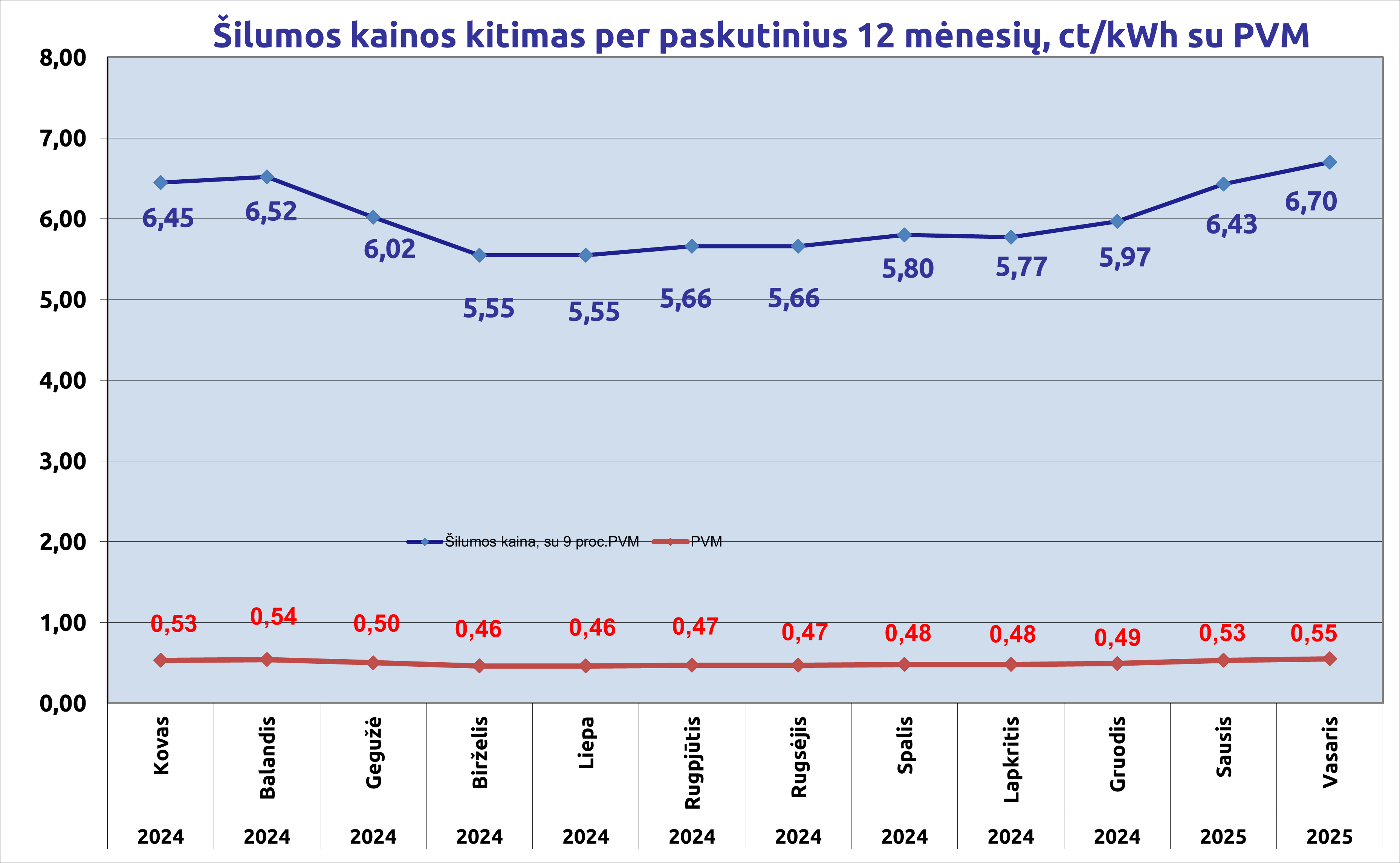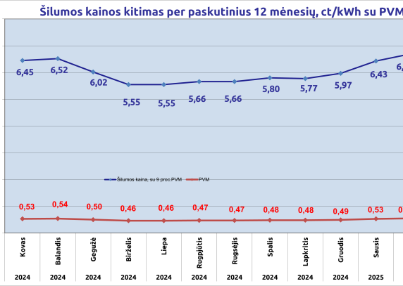 Gyventojams šilumos vienanarė kaina už suvartotą šilumos kiekį – 6,70 ct/kWh su 9 % PVM